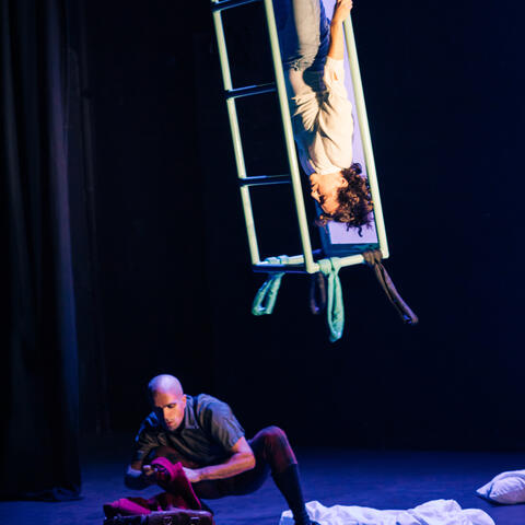 is an aerial comedy about grief, memory and relationship. Suitable for adults and young people alike, the show combines physical comedy with striking aerial acrobatics and an original, constantly moving aerial set, and is the debut live show from She Said Jump. Drawing on theatre clown, circus and puppetry, this accessible show tackles the themes of grief and bereavement with a light and playful touch.