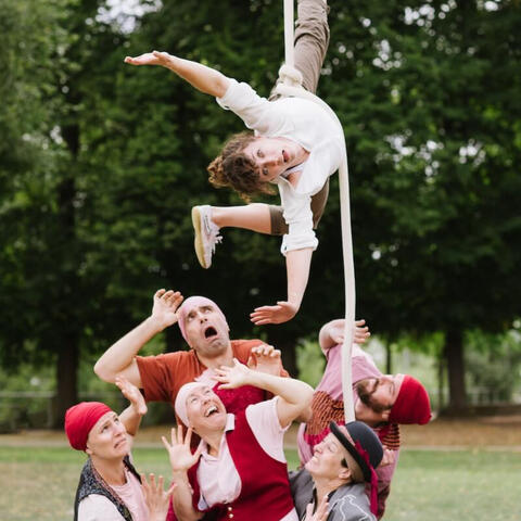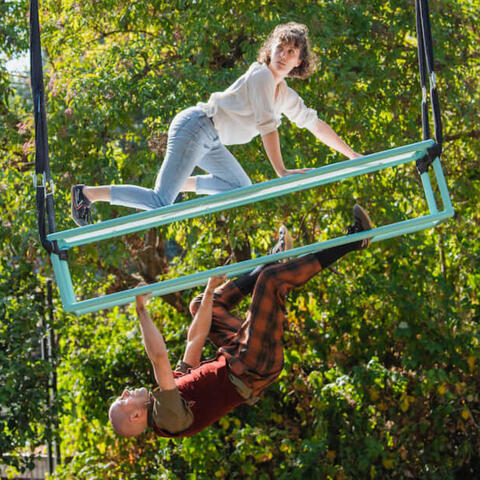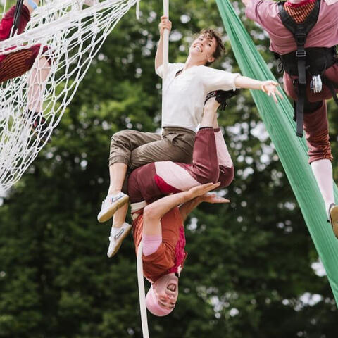 an aerial theatre company combining the silly and the serious to create performances for indoor, outdoor and digital spaces.
